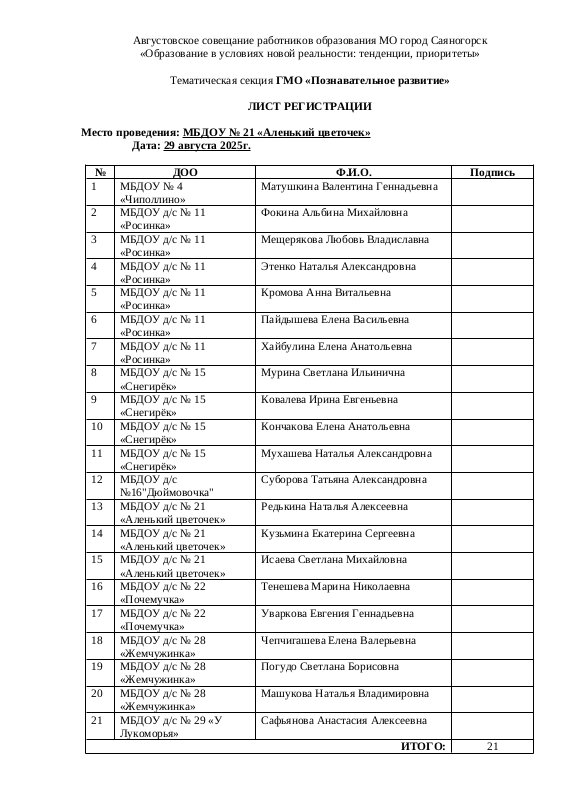 Редькина Н.А., воспитатель МБДОУ д/с № 21 "Аленький цветочек"